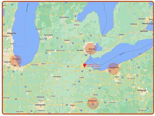 Detroit, Fort Wayne, Toledo, Cleveland, Chicago, Detroit,